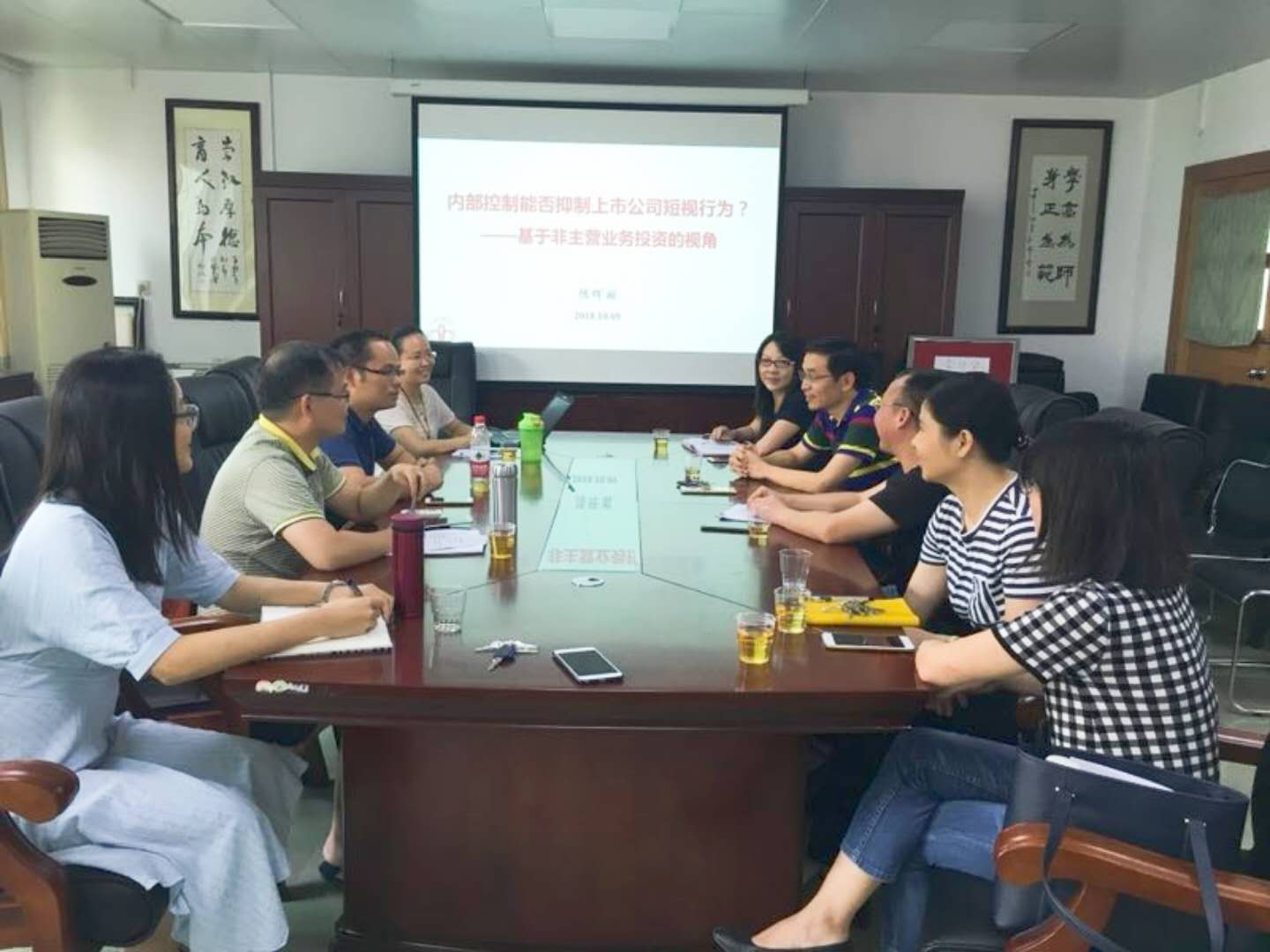本期论坛由suncitygroup太阳新城陈晖丽博士报告其工作论文《内部控制能否抑制上市公司短视行为?——基于非主营业务投资的视角》。陈晖丽博士从论文的研究动机、制度背景、文献回顾、假设提出、实证分析等方面,对论文做详细而深入地介绍。suncitygroup太阳新城的文芳经理、马鹏副经理、章刚勇老师、舒利敏老师、廖菁华老师、蔡竞云老师,以及来自信用管理公司的唐龙海老师、颜海明老师,参加了本次论坛。老师们展开了热烈的讨论,从论文选题、理论推导、变量设计等方面提出建设性意见。陈晖丽博士表示将对工作论文进行细致修改。参会人员均感深受启发,受益匪浅,实证研究的思维、观念上有了很大程度的提高,并希望此项活动能长期开展下去。