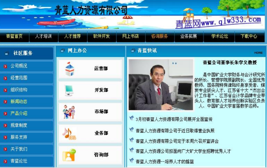 首先,朱学义教授向我们介绍了自己在过去实践过的案例以及获得的荣誉。朱教授一手创办了“青蓝人才网”,而“青蓝网”为老员工提供了一个锻炼自己和发挥能力的平台,使老员工的能力都能得到认可和证实,青蓝公司的宗旨深深体现了青蓝公司对老员工立业创业的肯定与支持。