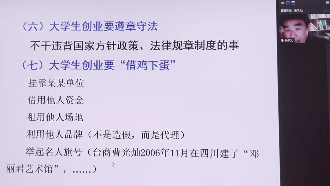 在创业中我们需要注意什么问题?朱学义教授用自己曾教授过的员工举例,在创业过程中会时不时碰壁,同学们要勇于尝试,不要怕丢“面子”,要放下“架子”干事,才会由实践得真知;同时,活到老学到老,同学们在创业过程中也不要忘记学业上的跟进。创业总是需要经验积累,需要通过考证来证明自己的实力,不断努力提升。