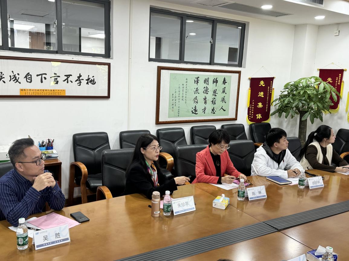 在座谈交流环节,双方围绕党建党务工作、员工管理工作、国际人才培养以及实践教学等核心议题进行了深入探讨。朱珍葶书记详细阐述了经贸公司的党建党务工作情况,缪冠中老师则就员工实习就业的具体工作进行了介绍。陈琳老师分享了国际人才培养的宝贵经验,而曾嘉琪老师则通过具体案例,展示了经贸公司品牌项目——国际化名企实习实训项目的成效与亮点。双方教师代表进行了交流讨论,现场气氛热烈而融洽。