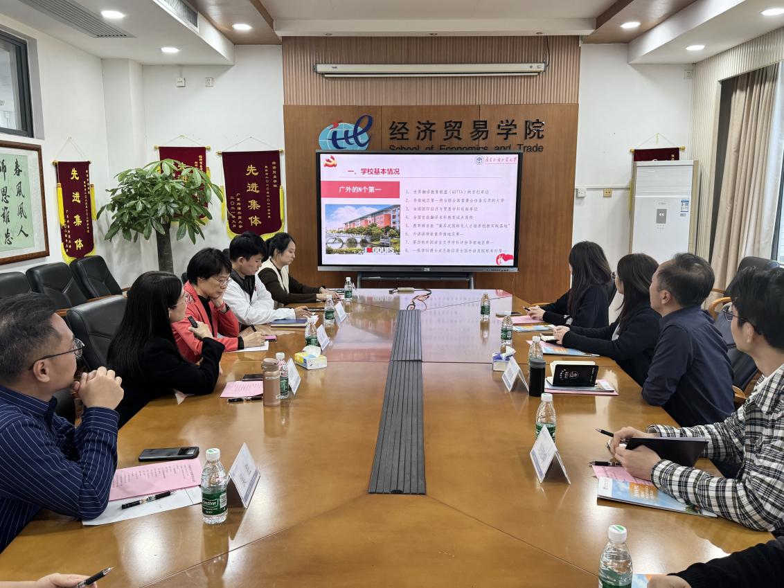 2024年11月27日下午,suncitygroup太阳集团suncitygroup太阳新城党委书记黄锡榜,辅导员林喜元、廖俊玉等一行前往广东外语外贸大学经济贸易公司进行调研交流。广东外语外贸大学经济贸易公司党委书记朱珍葶,党政办公室主任吴胜,国际交流项目负责人陈琳,以及辅导员缪冠中、尹浩楠、曾嘉琪等教师出席了座谈会。