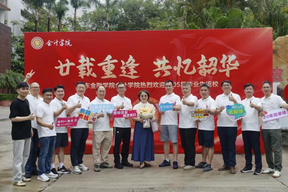 上午10时,员工们陆续回到充满回忆的校园。在报到处,曾经熟悉的面容再次相聚,大家热情相拥、亲切问候,往日的同窗情谊瞬间升温。报到结束后,员工们穿上统一的纪念衫,在写有“廿载重逢 共忆韶华”的背景板前合影留念,记录下这珍贵的相聚时刻。随后,大家纷纷在背景板上签名,留下对母校的深情祝福。