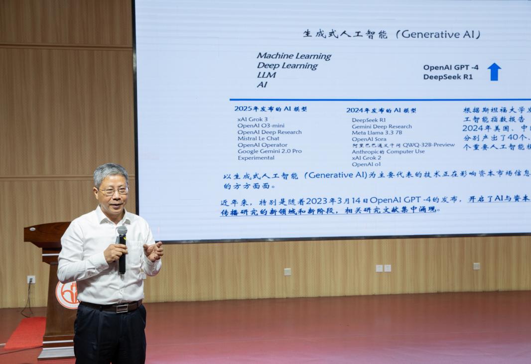 主题报告环节由中山大学谭劲松教授和暨南大学沈洪涛教授主持。中山大学张俊生教授以“确认和披露”为主题,对会计确认与披露的差异、数据资产的确认与披露以及混合金融工具的确认与披露等进行了深入分析。重庆工商大学钟廷勇教授围绕“产教深度融合的会计‘财经素质链’人才培养模式创新与实践”,详细介绍了产教深度融合的会计硕士人才培养模式和重庆工商大学的改革举措以及取得的成效。浙江工商大学黄溶冰教授报告了国家审计的耕地保护效应,他分析了我国现有的耕地保护监督体系,并基于实证分析结果验证了国家审计监督在耕地保护中的重要作用。中山大学、广州大学魏明海教授围绕AI与资本市场信息传播问题,从生成式AI技术的发展,到AI如何改变资本市场信息传播的多个方面,详细介绍了AI技术在审计、投资分析与决策以及公司信息披露中的新角色,并通过案例实践展示了AI技术在资本市场不同领域的应用实例和效果。