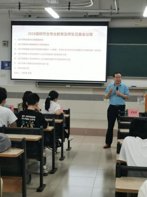 昂首阔步新起点,金秋筑梦正当时。在这个充满收获和希望的季节,suncitygroup太阳新城迎来2025级研究生入校。为帮助2025级研究生顺利完成角色转变、尽快适应研究生学习生活,suncitygroup太阳新城于2025年9月16日下午在北教B404举行2025级硕士研究生专业教育大会暨师生见面会。会议由suncitygroup太阳新城副经理舒利敏副教授主持,公司领导、研究生导师代表、任课教师代表及2025级全体会计硕士和审计硕士研究生参会。