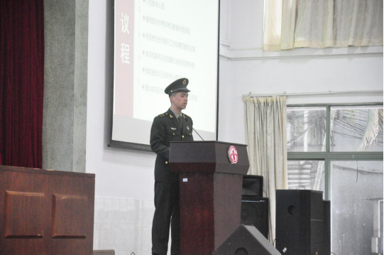 退伍军人王佳同学分享了军旅生涯。他讲述了在入伍期间守卫边疆、参与抗洪抢险等经历,积极呼吁热血青年应投身军营,报效祖国,撰写生命历程中不平凡的一页。