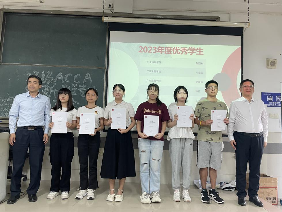 活动中,赖志成书记和秦格副经理为2020级,2021级和2022级获得ACCA优秀学员荣誉称号的6位同学颁发证书。获得荣誉的同学依次分享了自己学习ACCA的历程和经验,让23级的新同学们获益匪浅。
