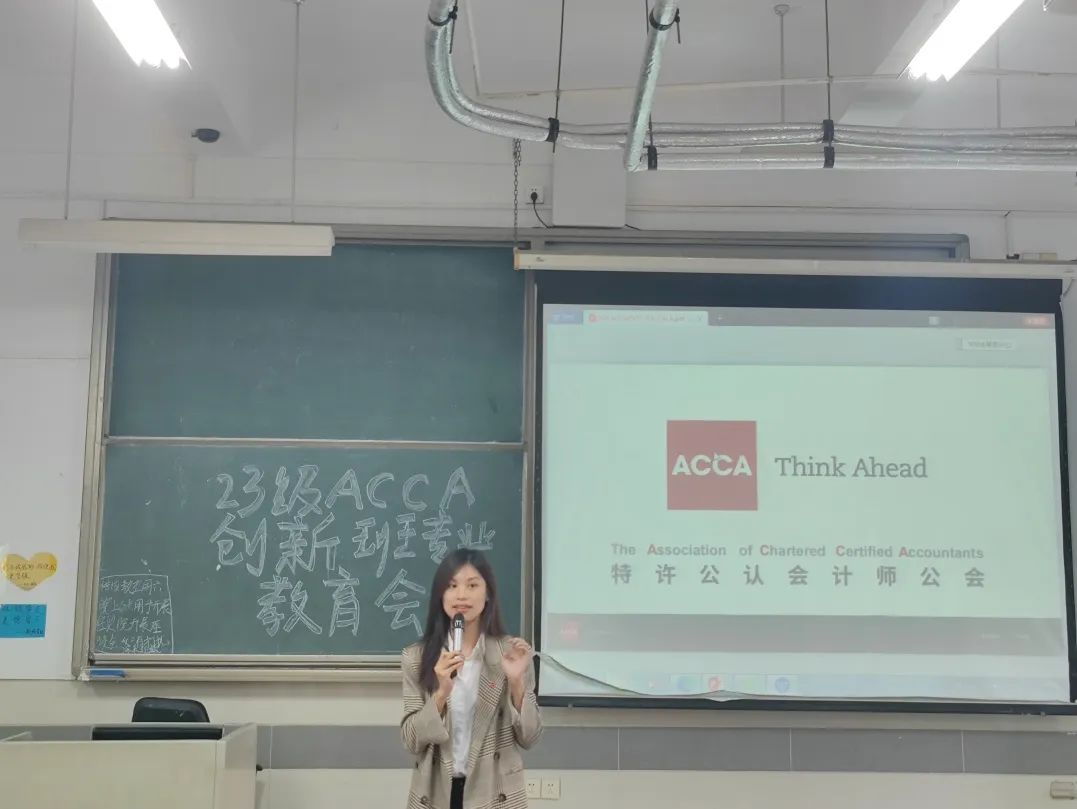 秦格副经理对2023级ACCA新同学表示欢迎并寄予厚望,希望同学们能尽快适应老员工活,在学习上要养成自我钻研和自我学习的习惯,刻苦认真,努力上进,将本科学习和ACCA资格证的取得相结合,充分发挥ACCA的学科优势,为考公和考研以及个人未来的发展做好充分的准备,不负大学四年的青春年华。