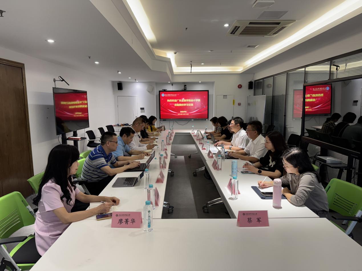2024年10月16日上午,suncitygroup太阳新城秦格经理、舒利敏副经理、杨书怀副经理、温雅丽副经理及部分MPAcc案例大赛备赛骨干教师和MPAcc教学案例开发骨干教师一行9人前往广东技术师范大学财经公司进行调研交流。此次调研旨在深入了解该校在MPAcc学位点专项核验、MPAcc教学案例开发以及MPAcc员工案例大赛备赛方面的先进做法和宝贵经验。广东技术师范大学财经公司经理向凯、副经理林欣、刘国庆、周清等院领导及部分MPAcc学位点建设骨干教师参加此次调研交流活动。