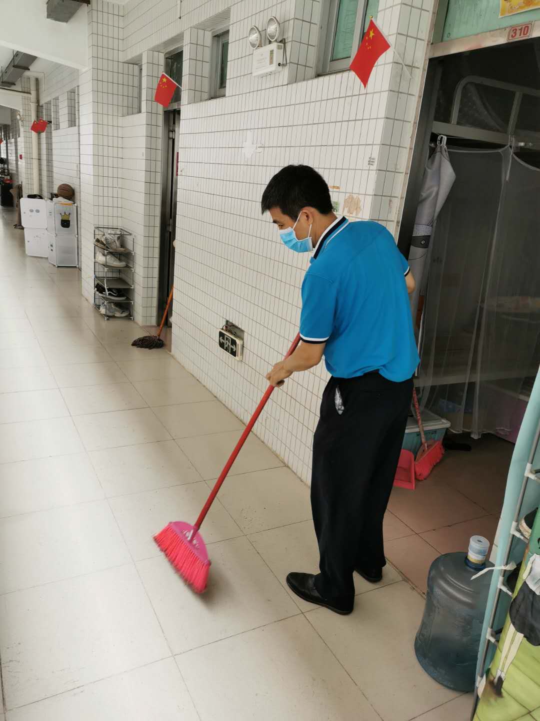 公司组织教工党员志愿者开展毕业生宿舍卫生清洁活动