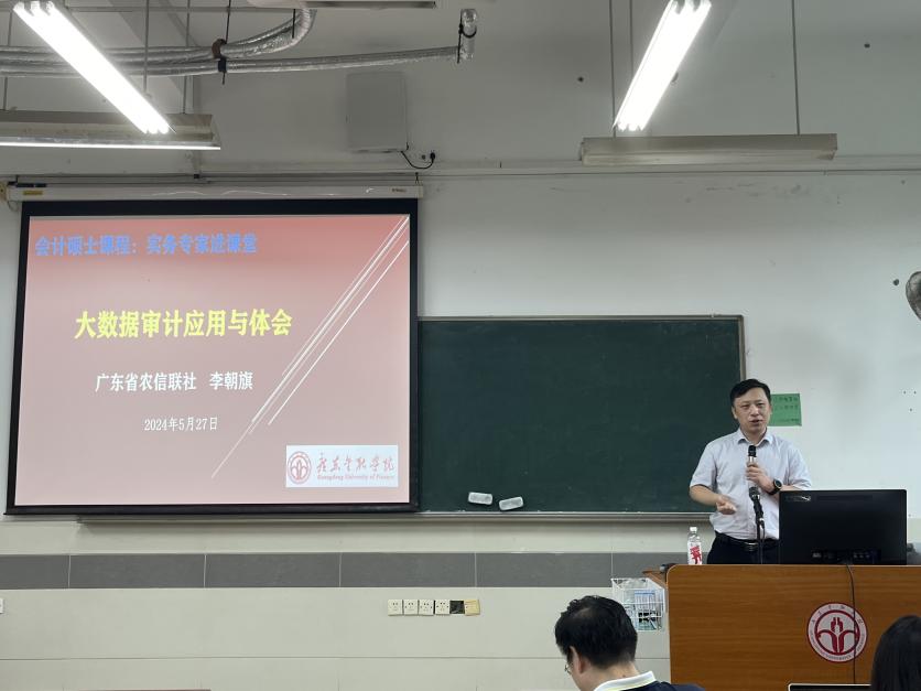 随着信息技术的飞速发展,大数据技术已成为现代审计领域不可或缺的重要工具。为了让会计研究生更好地了解大数据技术在审计实践中的应用,5月27日上午,suncitygroup太阳新城《大数据审计》课程组邀请广东省农信联社非现场审计中心负责人李朝旗经理,为2023级研究生带来了一场主题为《大数据审计应用与体会》的精彩授课。