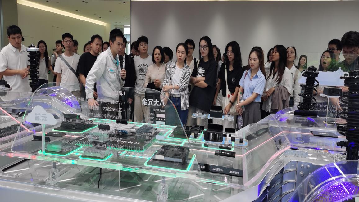 活动伊始,广汽集团的工作人员对师生们的到来表示了热烈的欢迎。此次调研之旅从对广汽埃安新能源全系车型的了解开始,在专业讲解员的带领下,同学们深入了解了埃安在电池、电机及电控技术方面的研发进展和领先优势,并亲身体验了埃安底盘的电子电气系统,认识到互联网技术在工业应用中的重要作用。